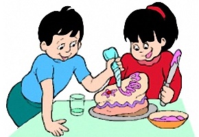 Motiv: Junge, Mädchen, Mann, Stuhl, Böller, Kuchen,