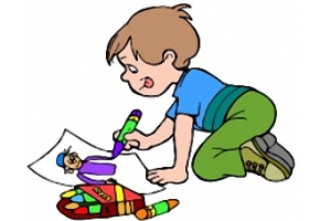Malstifte, Malen, Papier, Sessel und Weinen. |