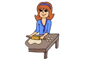 Roller, Teig, Puppe und Backen. |