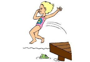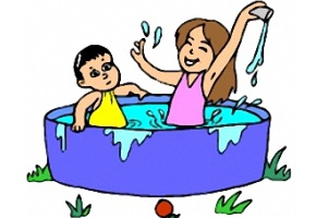Motiv: Mädchen, Junge, Planschbecken, Wasser, Steg,