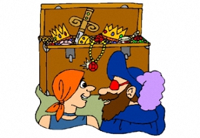 und Piraten, Kiste, Schatz, Gold, Loch, Insel,