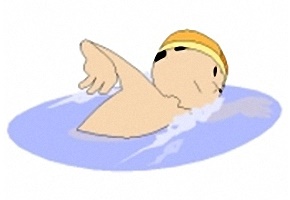 Mädchen, Junge, Brille, Wasser, Badekappe, Badehose