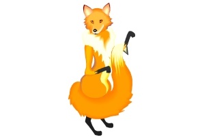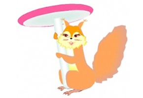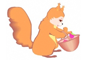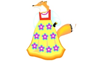 Motiv: Fuchs, Kleid, Eichhörnchen, Korb und Pilz. |