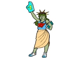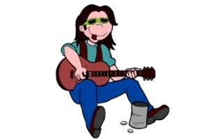 Freiheitsstatur, Mann, Dose, Kleingeld und Gitarre. |