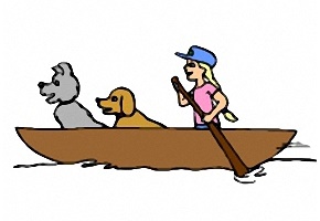 Boot, Paddel, Hunde, Wasser, Schwimmweste und