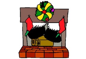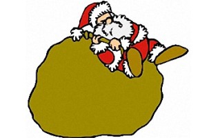 Motiv: Weihnachtsmann, Sack und Kamin. |