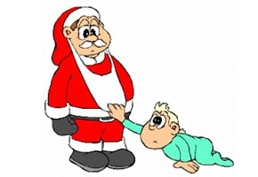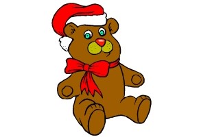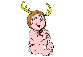 Motiv: Weihnachtsmann, Teddybär und Baby mit Geweih. |