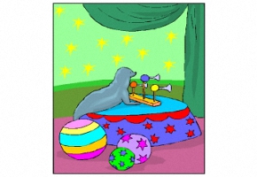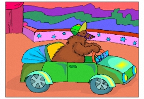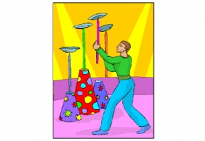 Motiv: Jongleur, Teller, Stäbe, Auto, Bär, Frau,