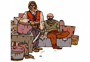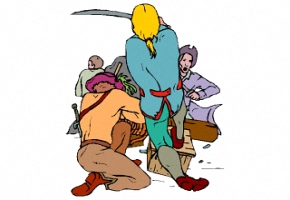 und Piraten, Säbel, Mann, Hut, Pistole, Kisten,