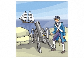 Kanone, Pfeil und Bogen. |