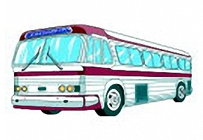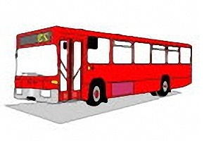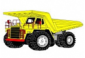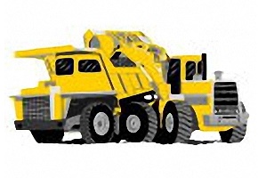 Motiv: Bus, Kipplader, Bagger und Muldenkipper. |
