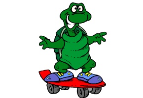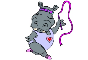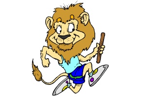 Schildkröte, Band, Stock, Löwe und Nilpferd. |