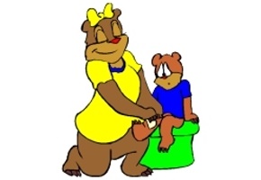 Motiv: Bär, Kleid, Sitz, Mutter, Kind, Nashorn,