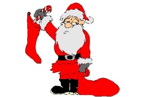 Motiv: Weihnachtsmann, Strumpf und Weihnachtsbaum. |
