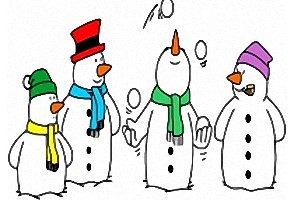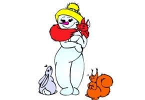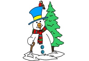 Motiv: Schneemann, Schneefrau und Tannenbaum. |